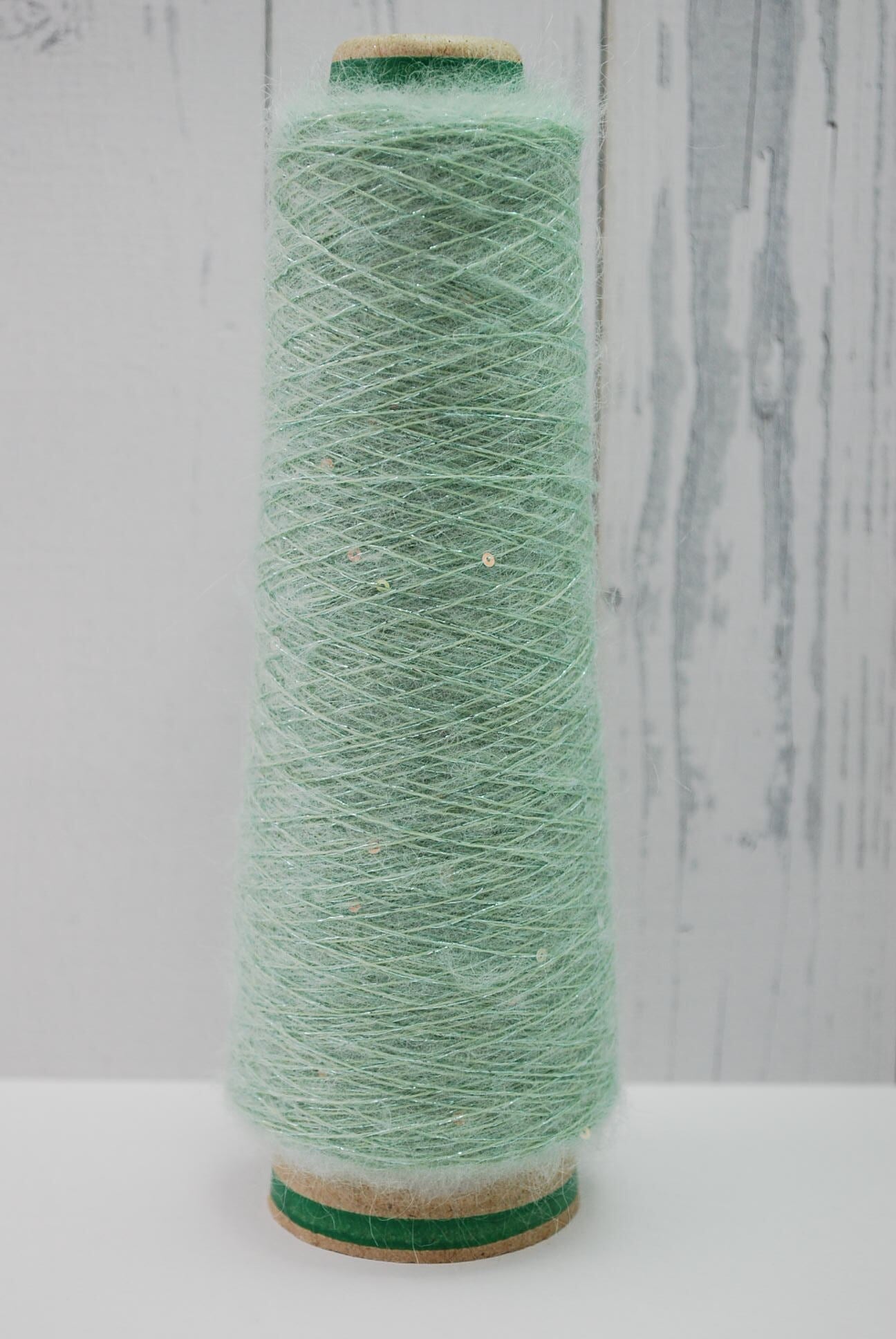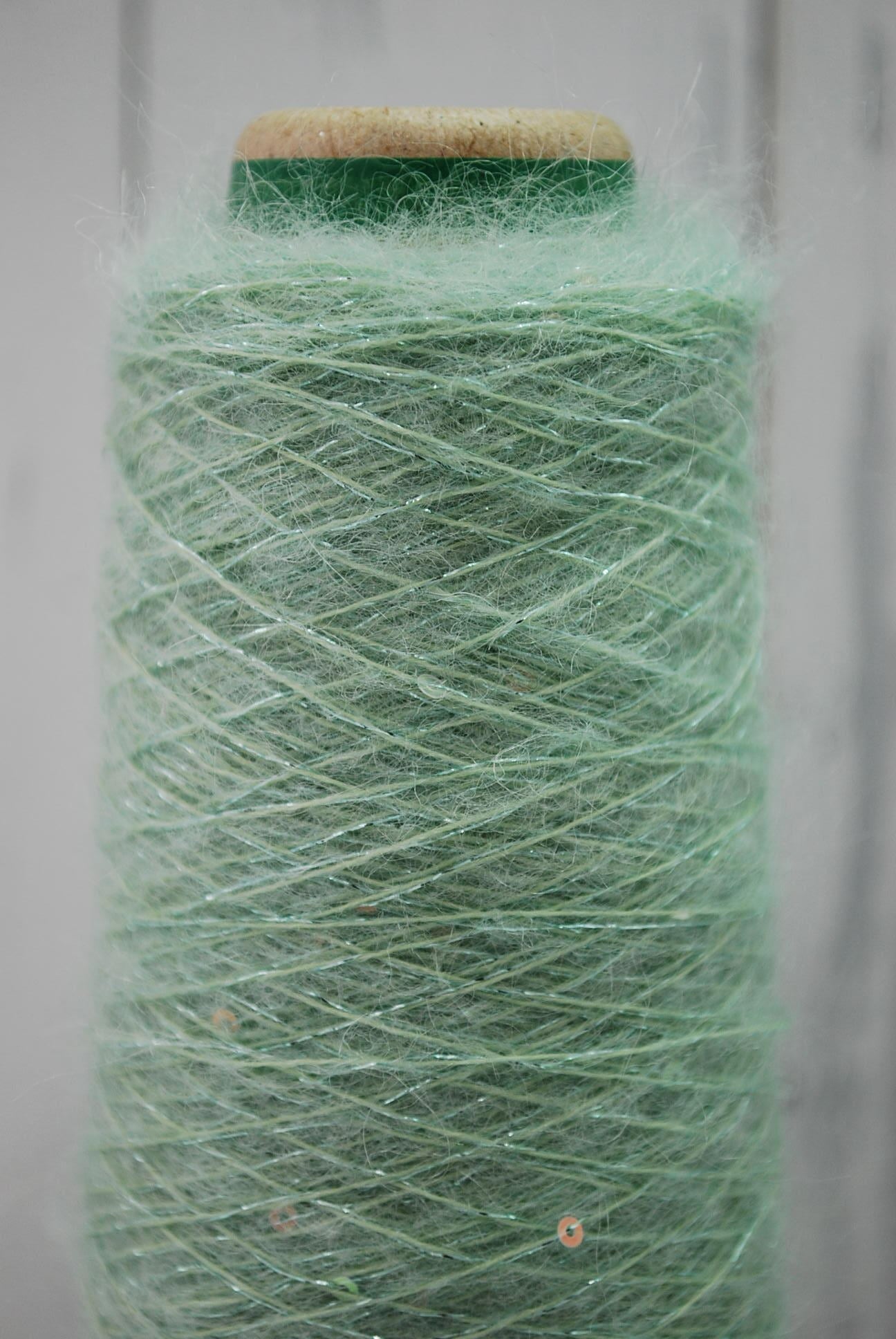 へアリースパンコールラメ 毛足のあるモヘアにラメを撚糸し、品のある小粒のスパンコールをちりばめた贅沢な素材です。このユニークな毛糸を使って、あなたのアイデアを形にしてみませんか?手にしたとき、心が躍る作品が生まれることでしょう!