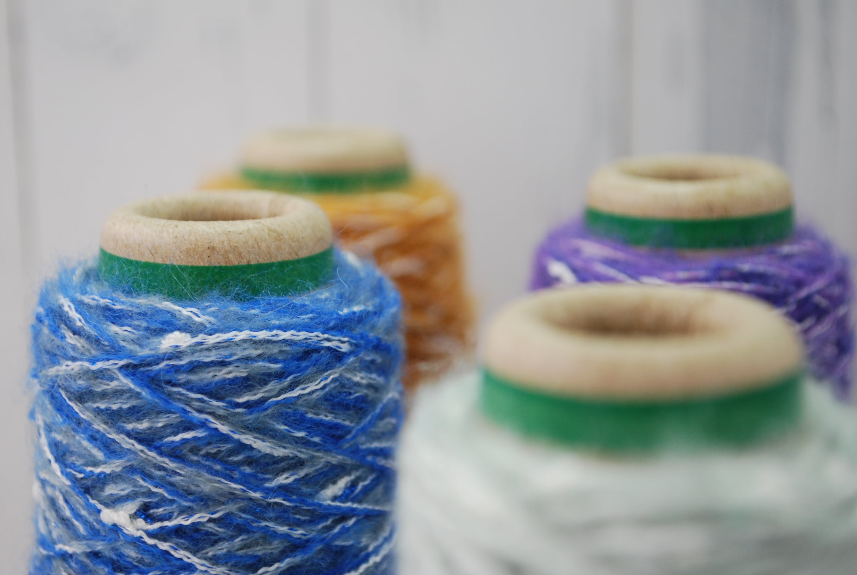 ラメノットツイスト は、ノットのようなラメ糸と毛足のある素材をMIXした新しい糸です。ポリエステル55%、アクリル20%、ナイロン16%、ウール6%、ポリウレタン1%の絶妙なブレンドにより、手触りが柔らかく、ラメの煌きが加わり、特別なアイテムを生み出すのにぴったりです。日常使いから特別な場面のアイテムまで、幅広いシーンでご活用ください。
