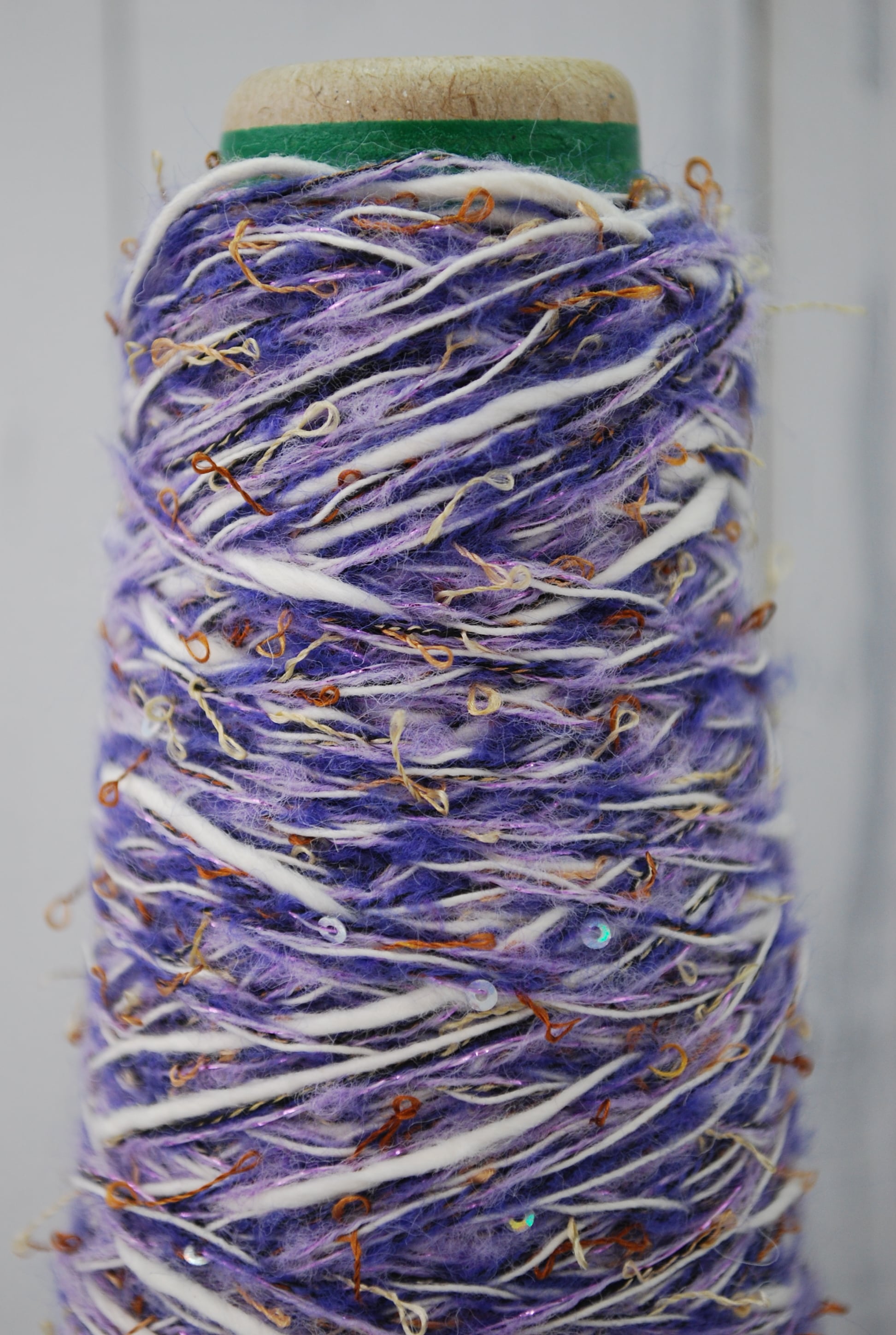 ファンシースパンコールラメMIX 1/3.3 6者混は、ラメスパンコール糸、スラブ糸、ループ糸、へアリー糸の4種類の素材をミックスして作られた特別な糸です。それぞれの糸が組み合わさることで、視覚的に華やかで独自のテクスチャーが実現されます。ファッションアイテムからインテリア雑貨まで、幅広いスタイルにマッチする魅力的な糸です。