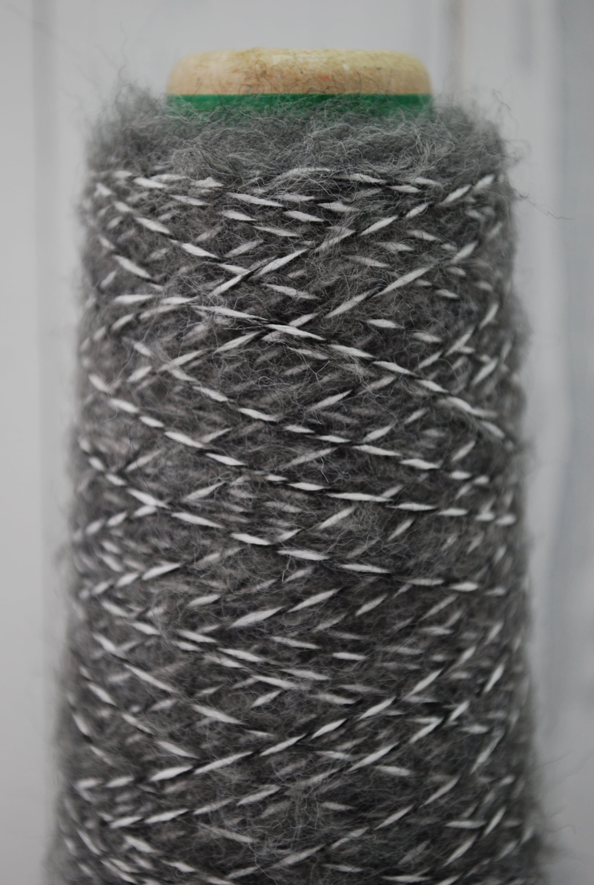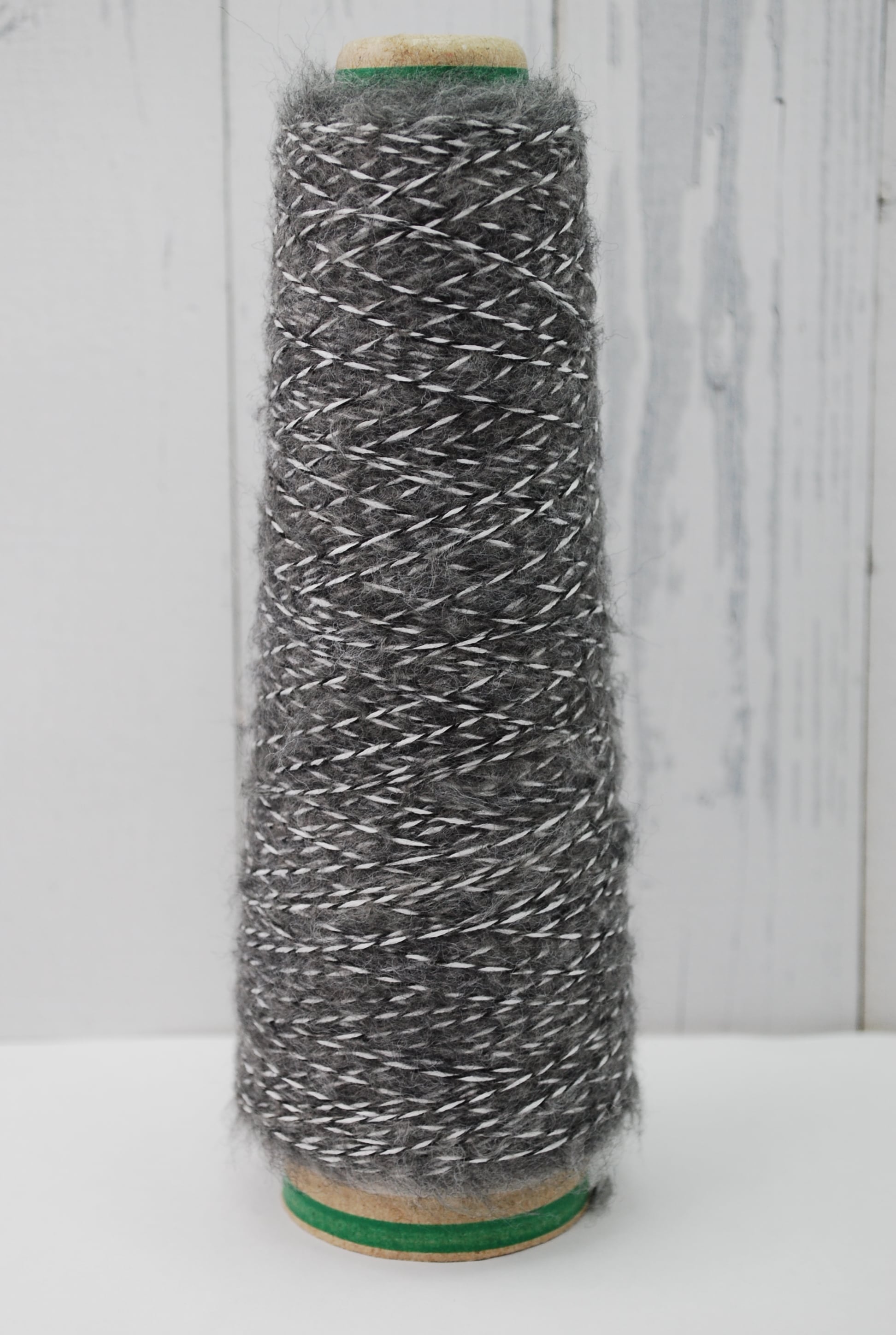 へアリーミックスは、コットン22%、ポリエステル22%、アクリル19%、ナイロン17%、ウール14%、レーヨン6%のバランスにより生まれた、豊かな風合いの糸です。白と黒の糸にグレーのヘアリー素材が撚糸され、独特の深みを持つ色合いが特徴的です。この糸を使えば、ふんわりとした温かみのある作品が生まれ、手編みの楽しさを再発見できます!