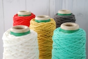 LABOYORI オリジナル ヤーンカバーリリヤーンは、通常の綿糸を細い綿糸のリリヤーンで包み込み、独自のファンシーヤーンを生み出しています。柔らかな質感とコシ感を兼ね備えたこの糸は、リリヤーンで包まれているので編んだ後の目面がきれいな感じに仕上がります。