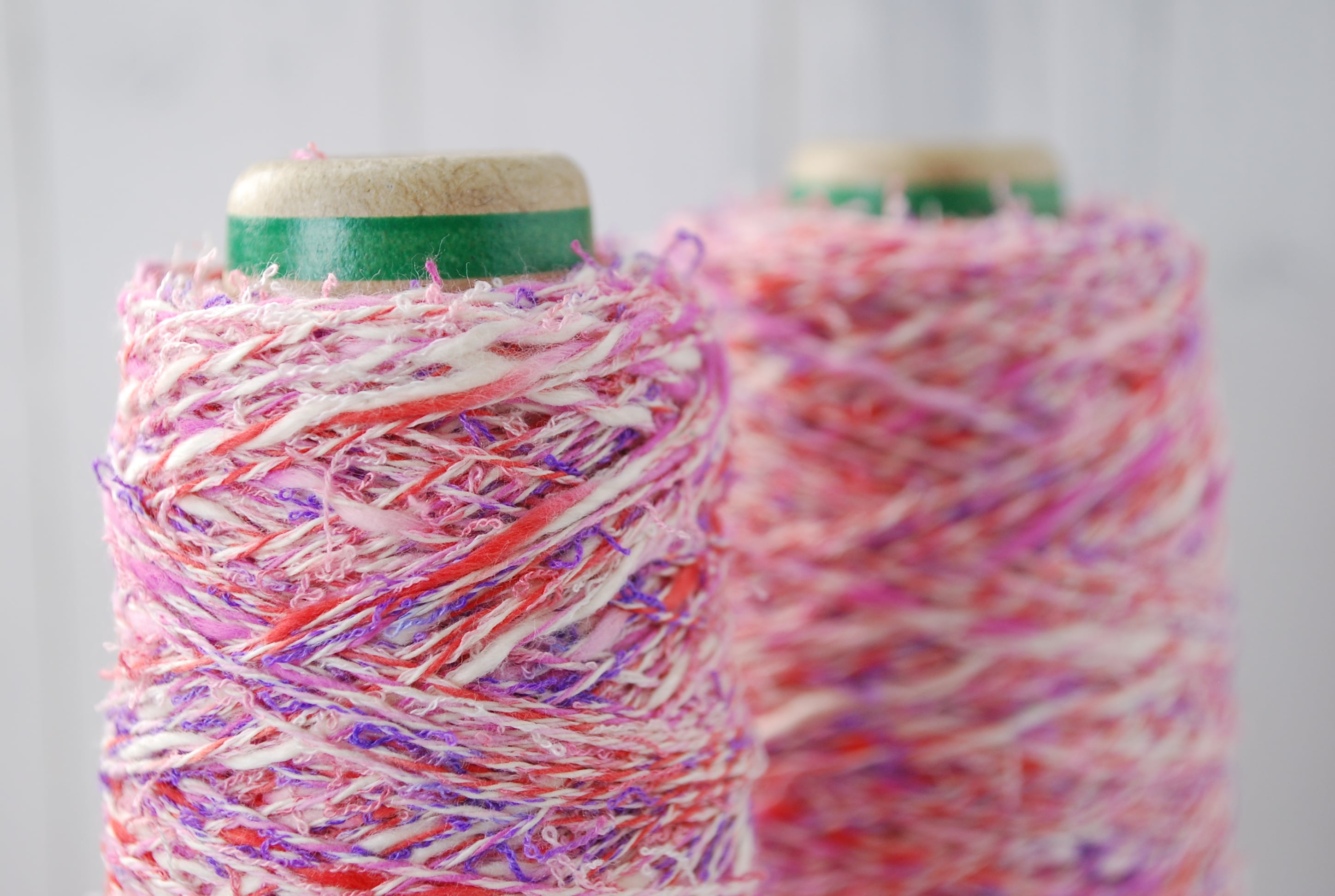 クレイジーミックス1は、カラフルなスラブ糸にカラフルなノット糸を撚糸して作られた、まさにこの夏にふさわしいクレイジーMIXな糸で、見た目も楽しい多配色に表面感もプラスするスラブやノットが特徴です。